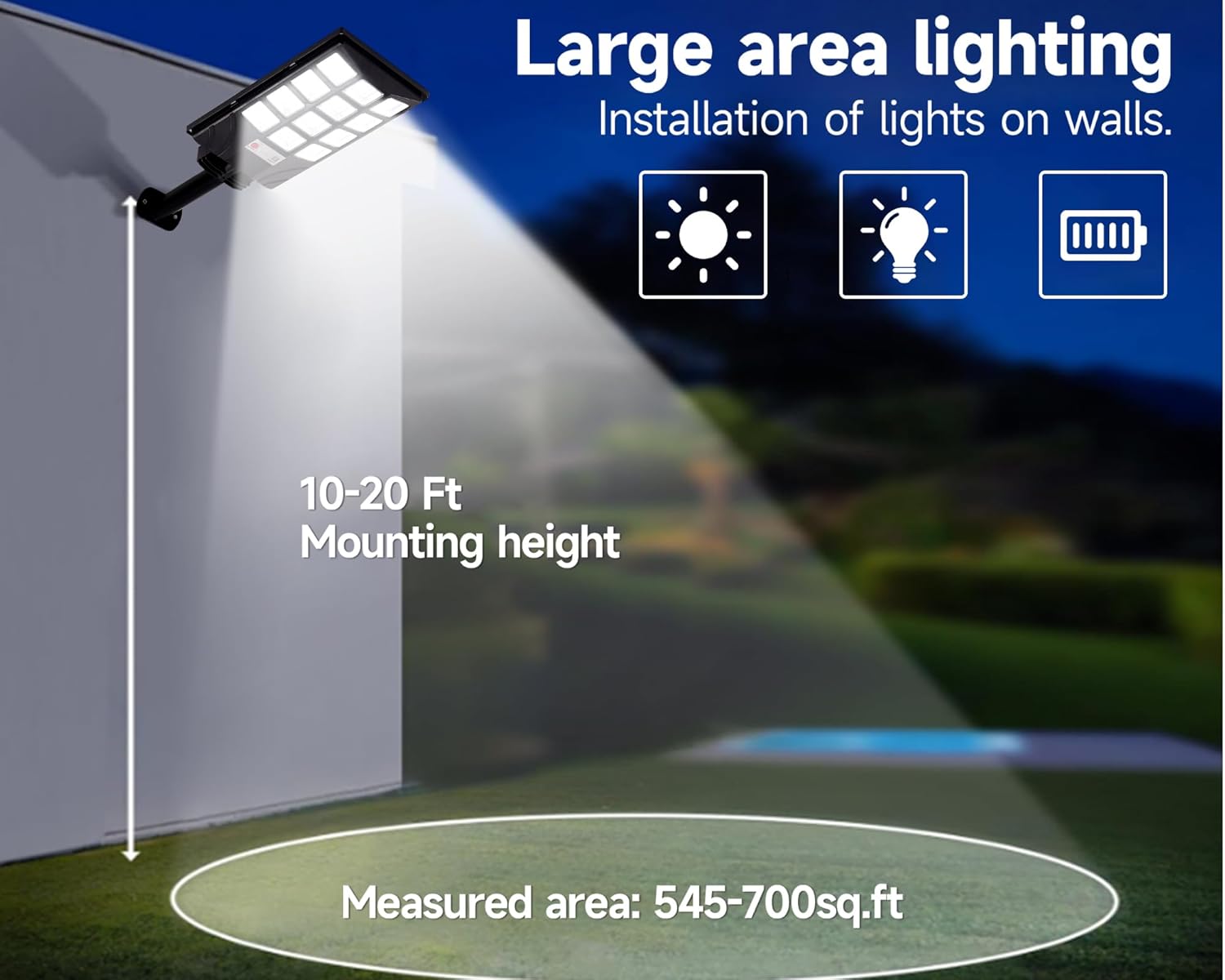 【Extremely-Vibrant & Environment friendly Photo voltaic Lights】 Photo voltaic lights outside makes use of 192 high-brightness LEDs, 20,000LM output (5x brighter than rivals). 6000mAh battery, 50000+ hours lifespan. Totally expenses in 6-8 hours, working time greater than 12 hours
