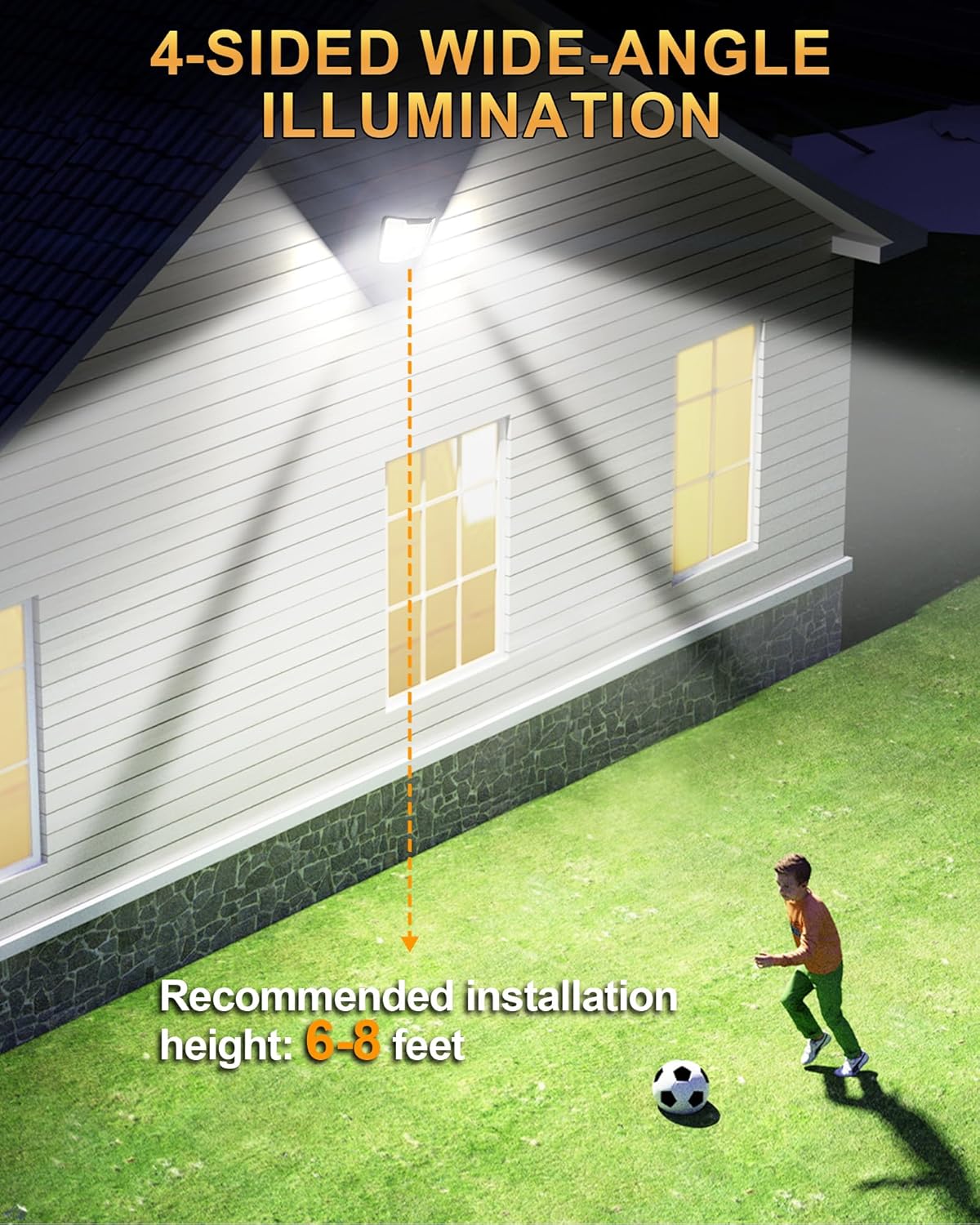 4-SIDED WIDE-ANGLE ILLUMINATION: This photo voltaic motin gentle adopts an modern 4-sided LED panel design, so that each one 4 sides will be illuminated on the similar time. Wider vary of illumination in comparison with conventional photo voltaic outside lights