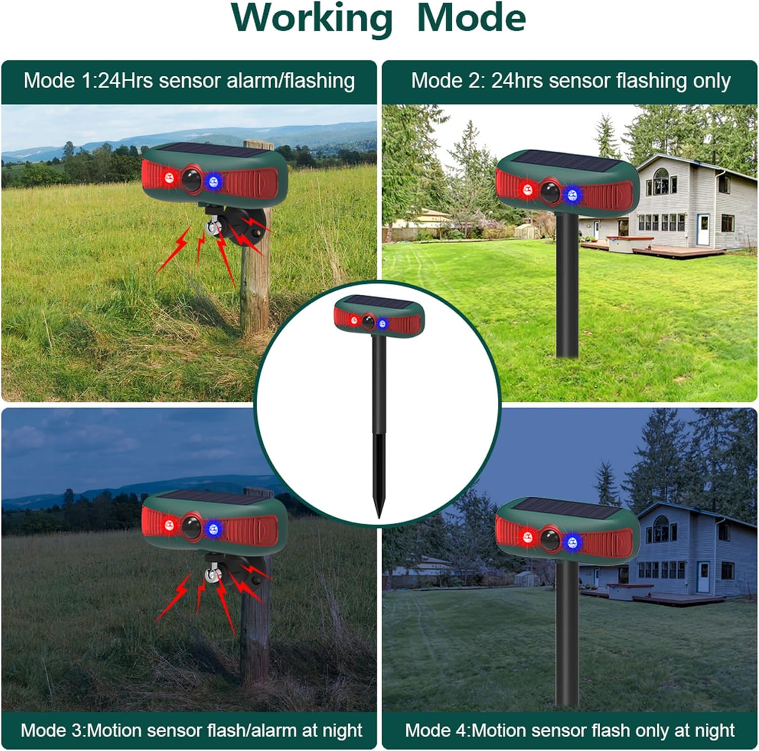 2, Present 4 Working Modes for Selection(day or night time) to not Trouble Your Relaxation : Mode1: 24-hour siren sound /flashing. Mode2: 24-hour siren flashing ONLY. Mode3: night time siren sound /flashing . Mode4:night time siren flashing ONLY