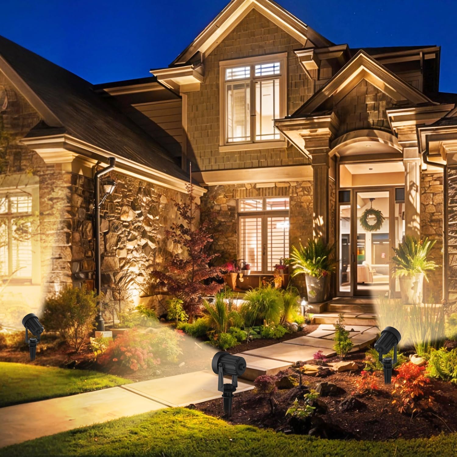 【Photo voltaic Spotlights Outside】LINQELLY photo voltaic spotlights out of doors are geared up with super-bright LED beads and 270° adjustable mild head, meet your various lighting wants. Photo voltaic panorama highlight excellent to your backyard, tree, statue or each day panorama irradiation, can enhance your home right into a marvel land that shines at night time. With enhanced concentrators, this spot mild outdoors has a concentrating impact on every mild bead and emit a excessive lumen of 3000K heat white mild.