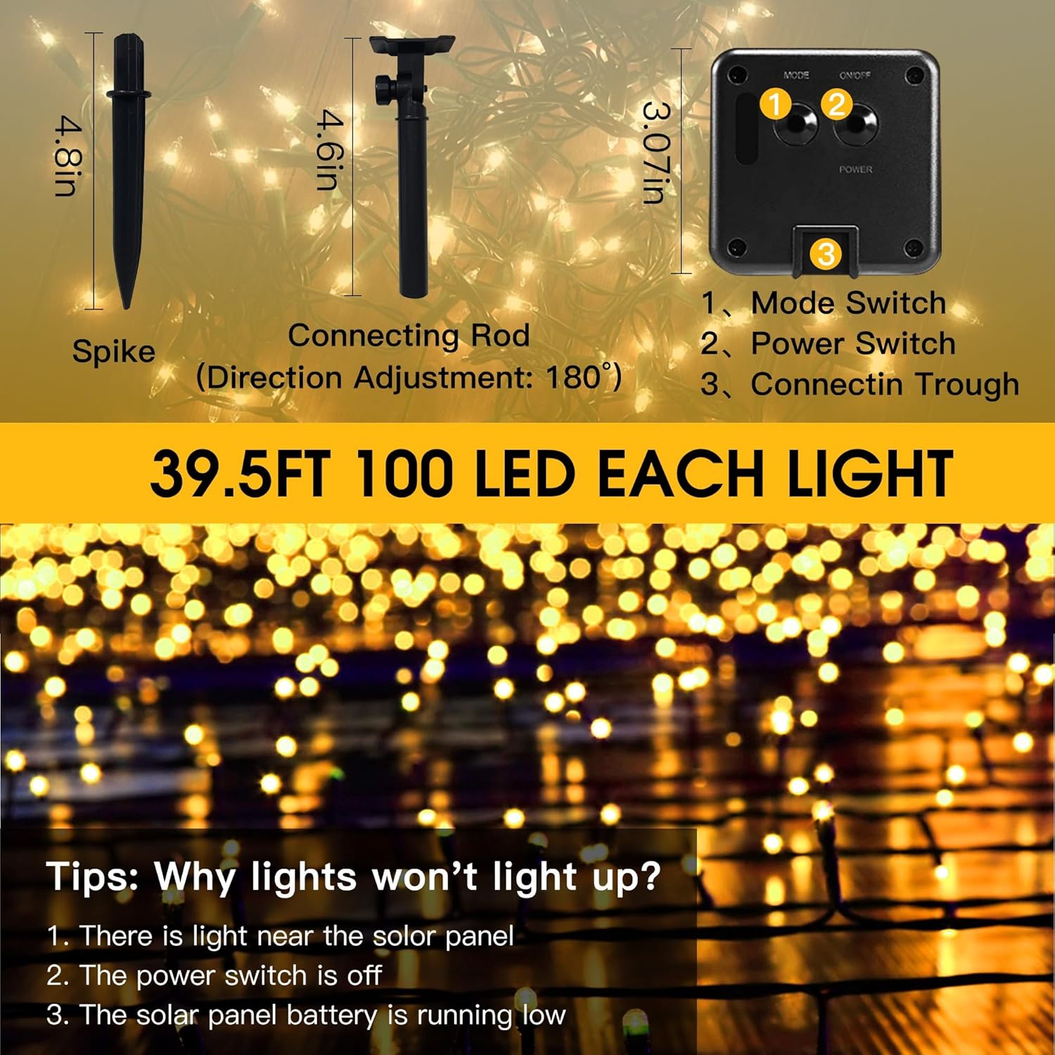1 NEW UPGRADED BRIGHT 2 IP65 WATERPROOF 3 8 LIGHTING MODES 4 GREAT DECORATION