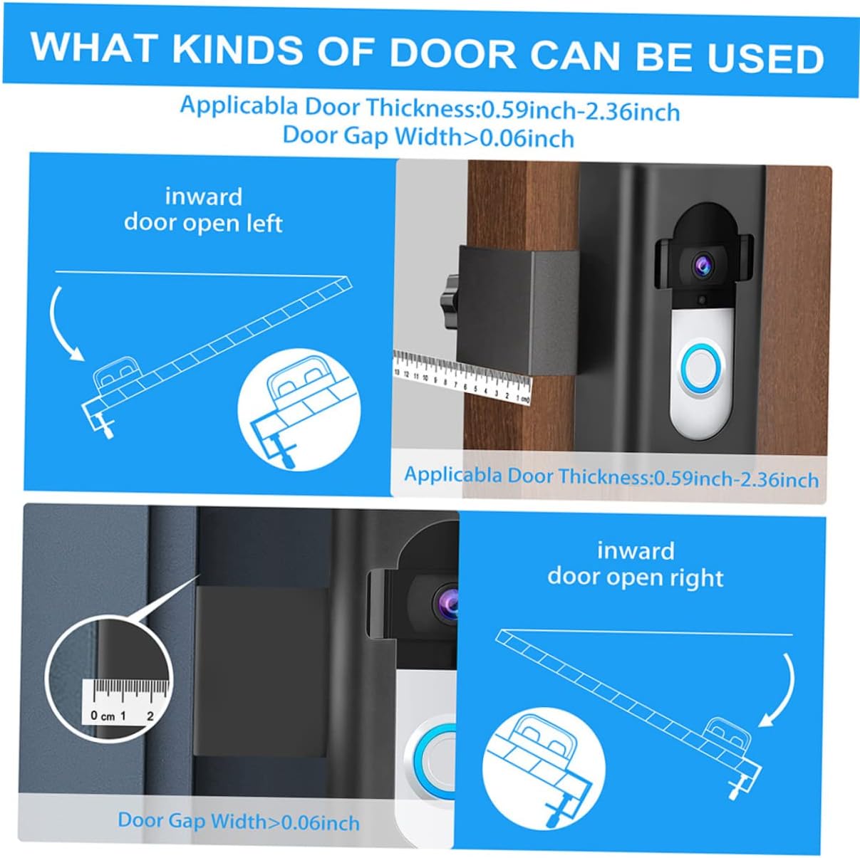 Door mount doorbell holder:no drilling for set up, it could hold your wall or door’s completeness, a lot sensible,anti-theft doorbell mount