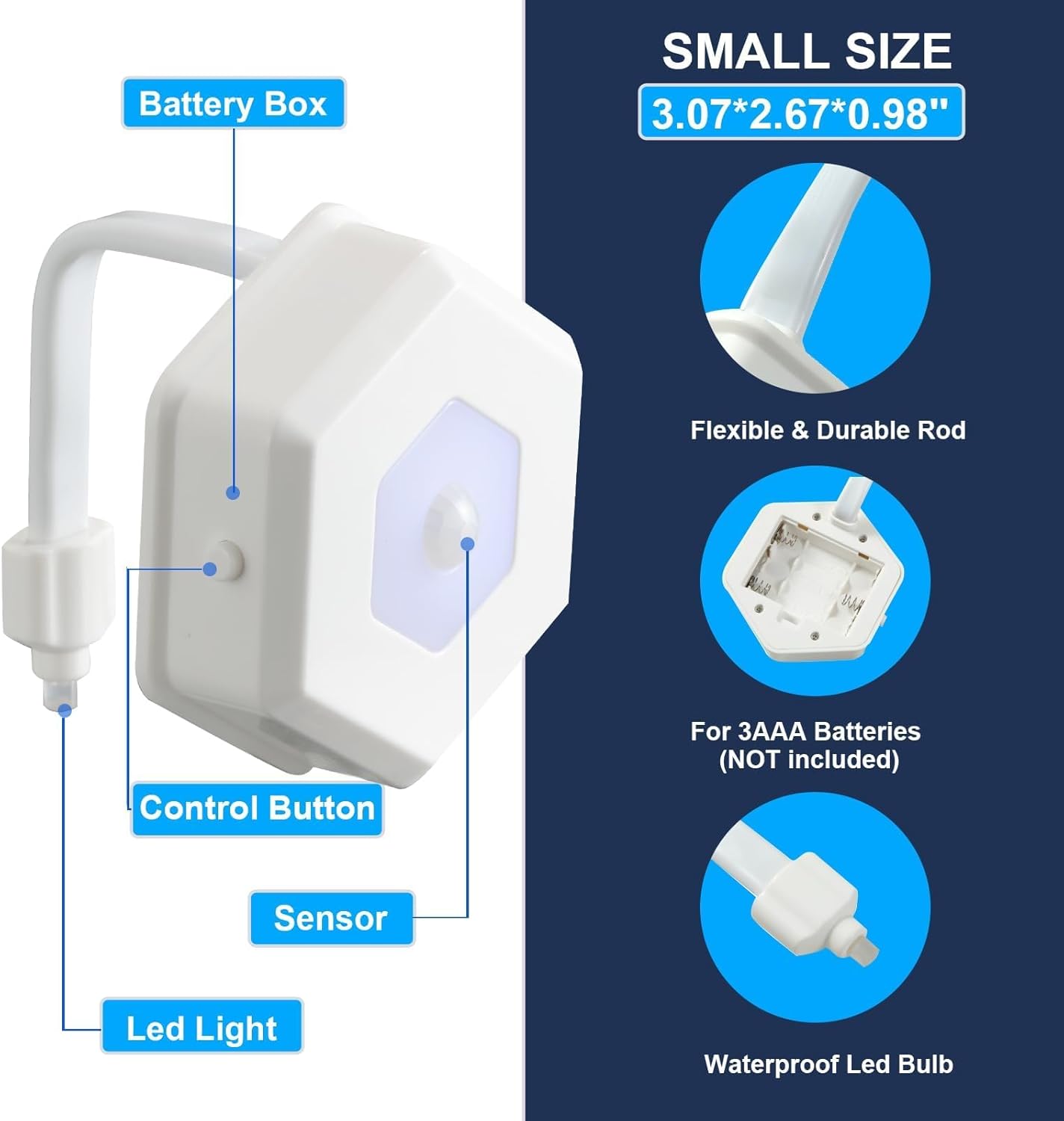 【Premium Materials】The bathroom night time mild materials is upgraded to ABS, the sensor machine and important board are upgraded and strengthened, the bending materials is upgraded to sturdy, powered by three AAA batteries (1.5V) (batteries are usually not included), which may be simply obtained and changed.