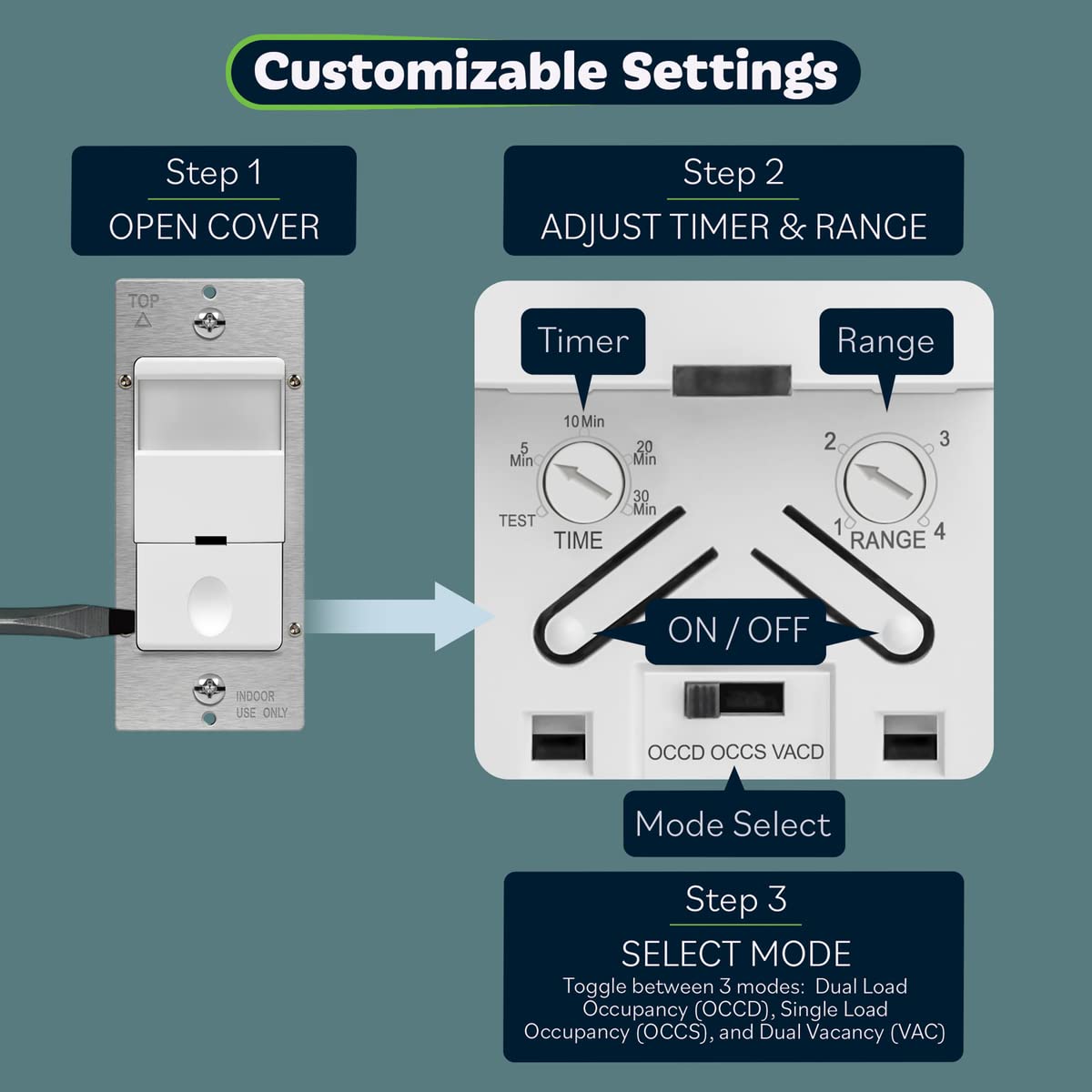 Join and automate two separate hundreds from a single unit; sensor wall swap detects movement to routinely flip lights or fan ON and OFF primarily based on the occupancy or emptiness in a room; splendid for the toilet, kitchen, or storage