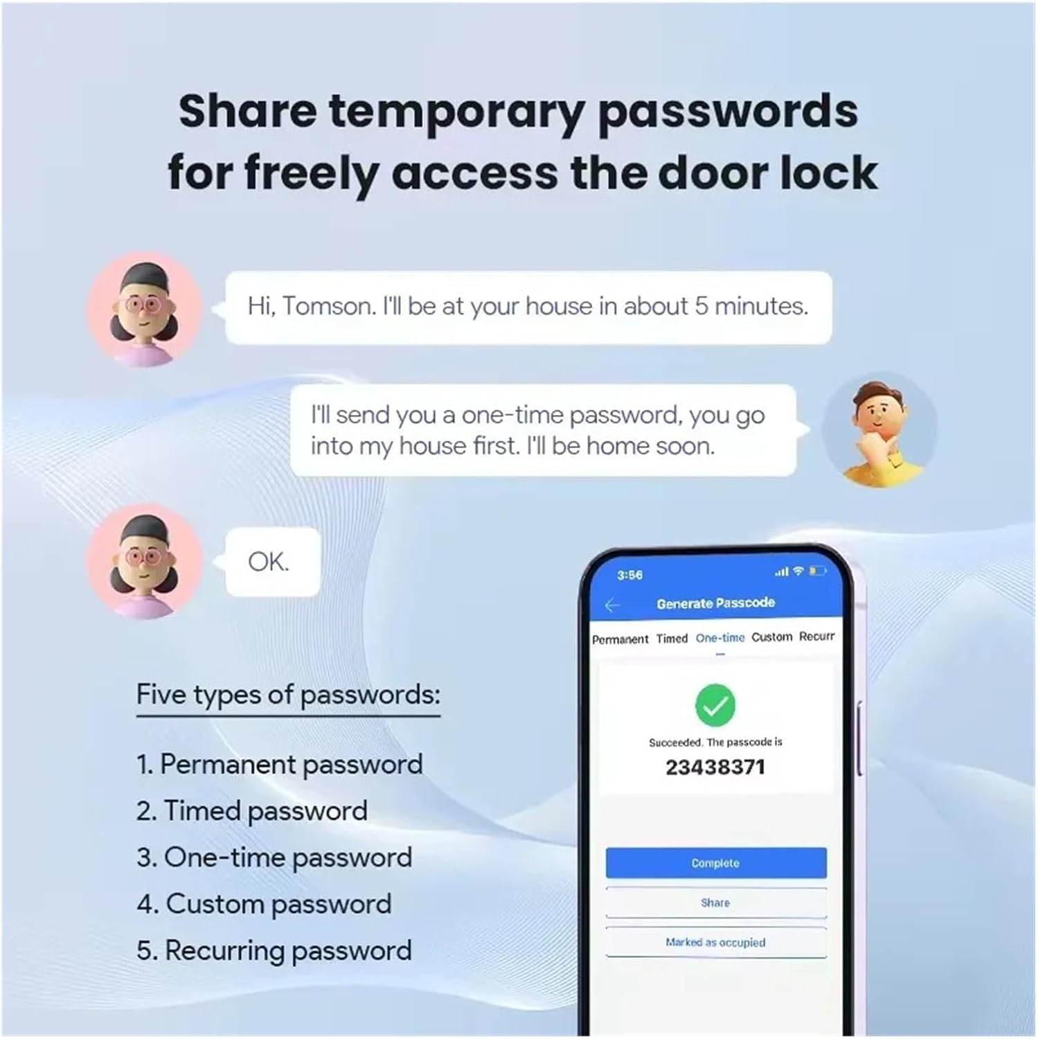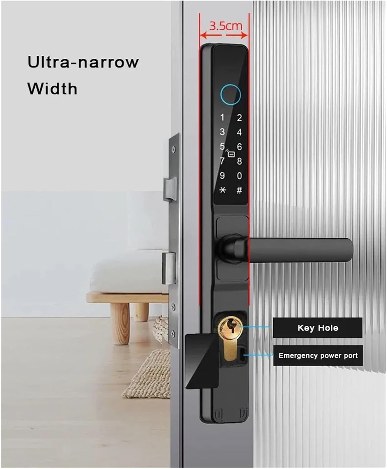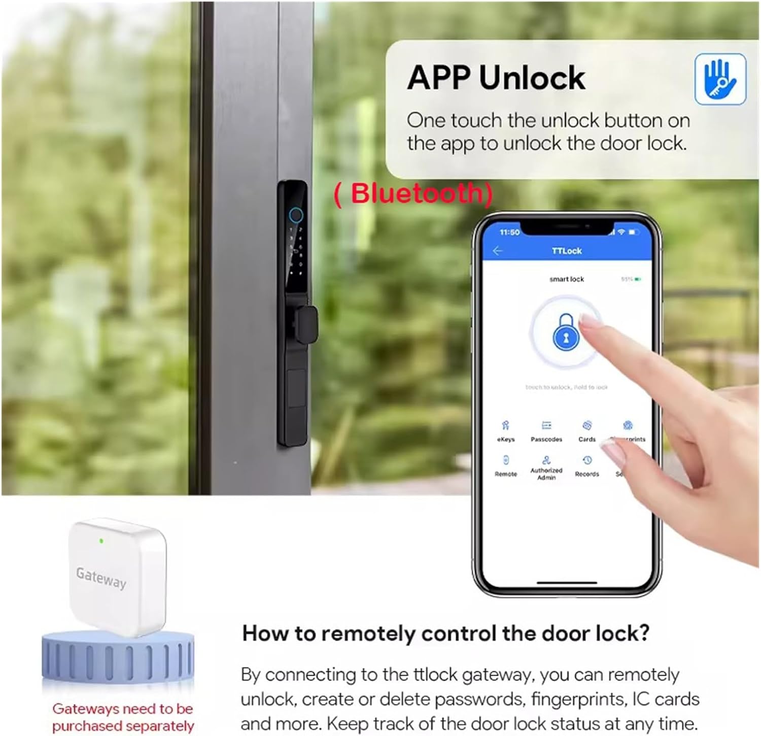 Fingerprint lock operate: Use password WIFI, facial recognition, IC card, mechanical key, and Tuya App fingerprint lock for biometric authentication, making it extra handy