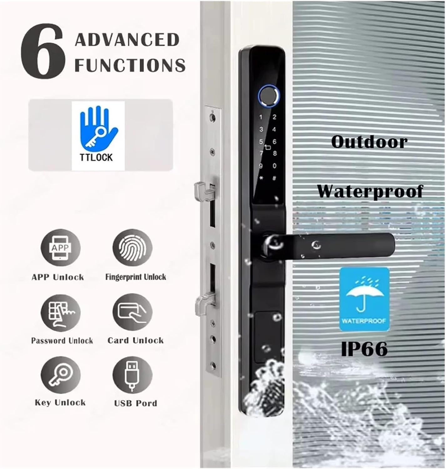 Ttlock App Sensible Lock Digital Biometric Fingerprint Locks Keyless Outside Waterproof Aluminum Sliding Door Lock For Dwelling