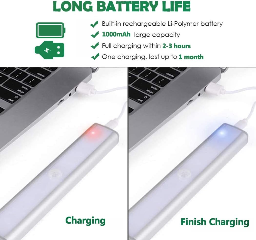 “1、3 Modes Adjustable LED Closet Lights: Movement Sensing/Immediate On/Immediate Off, can be utilized as regular evening gentle or movement sensor gentle 2、USB Rechargeable and Quick Charging: built-in 1000mAh high-capacity rechargeable battery, simply charged by way of the USB cable(included), the cupboard lights can final for about 8 hours after totally charged 3、 2 Straightforward Set up Methods: built-in magnet, you’ll be able to instantly make the cupboard gentle take in on all iron article floor; Or you should utilize the included double-sided 3M tape and iron sheet to stay on any non-iron article floor. When want cost or change place,you’ll be able to take it off anytime 4、Tremendous Lengthy Service Life: 80000 hours tremendous lengthy service life, in order that it’s best to no have any considerations within the use 5、Vast Purposes: these multifunctional below cupboard lights are perfect for the bed room, child room, closet, cupboard, hall, workshop, basement, storage, stairwell, oil depots, door, storage entrances and different locations”
