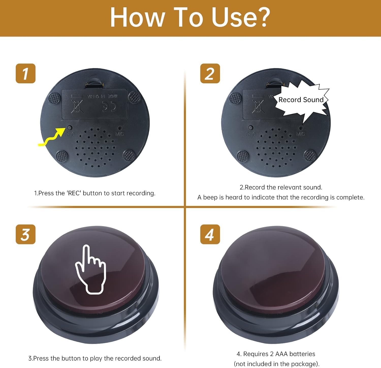 It is a button with a recordable sound. It may be used as a parent-child interactive toy, a baby’s language academic toy, or utilized in video games between households, firms and associates.