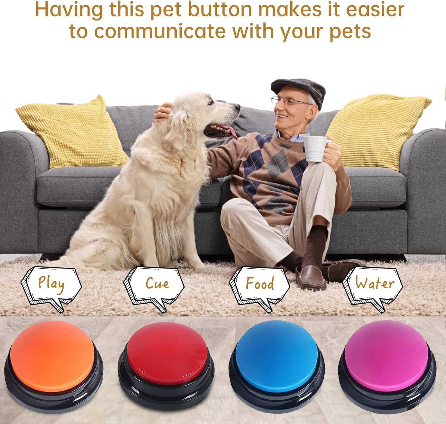 Voice Recording Button, Dog Buttons for Communication Pet Training Buzzer, 30 Second Voice Record and Playback, Funny Gift for Study Office Home 4 Pack Red/Blue/Rose/Orange