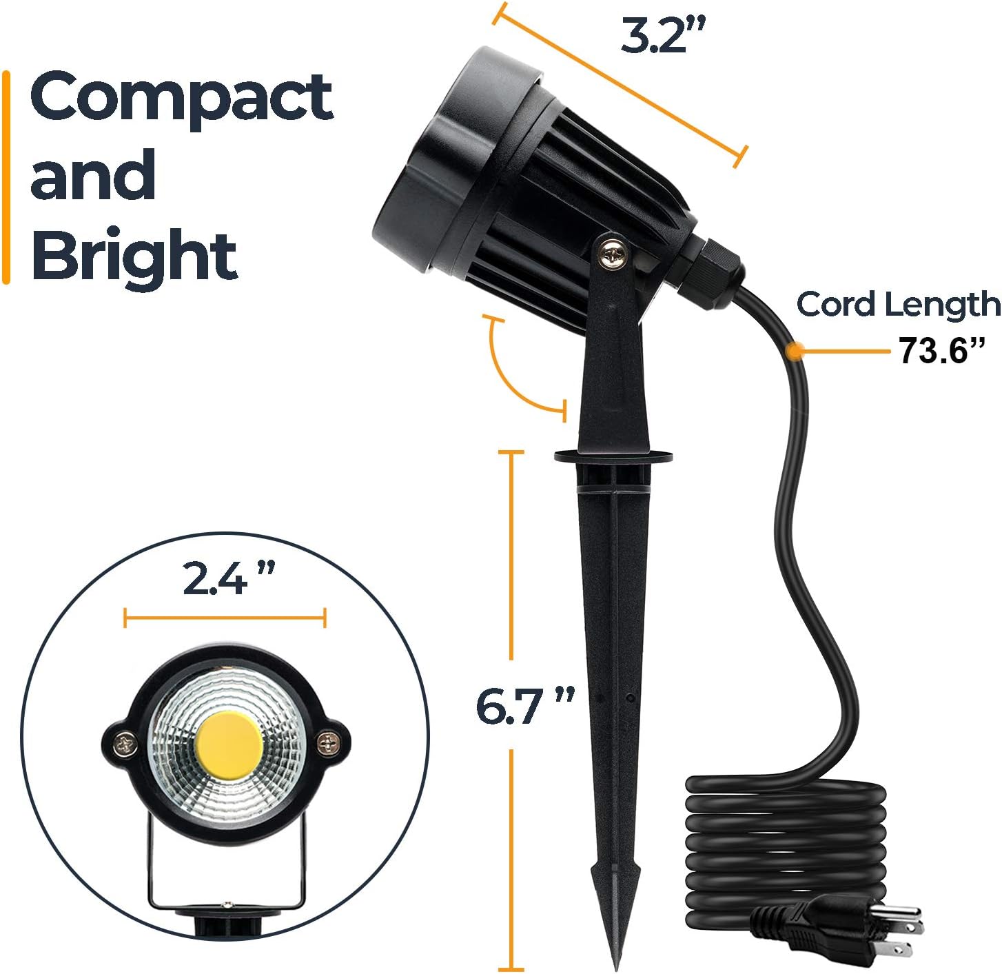 【Materials】: Sturdy shell and thickened tempered glass lens, excessive transmission with uniform gentle, no fragile, protected and dependable. 1.5M energy twine size with US plug, evaluating with photo voltaic lights, this cord-electric powered outside spotlights will lighting regardless of in winter, wet days, cloudy days, or areas with out ample sunshine, this are vital for a steady outside panorama lighting system.