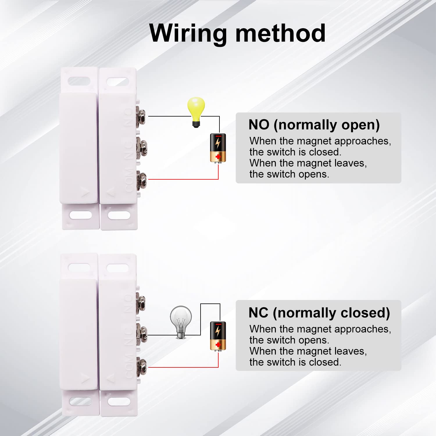 Contact Kind: NC/NO/COM: NC means Usually Closed.When the magnet collectively, the circuit is conductive; when the magnet separate, the circuit just isn’t conductive.NO means usually open: when the magnets are separated, the circuit is turned on ; when the magnets are collectively, the circuit just isn’t turned on. Actuation Distance: 10-20mm.