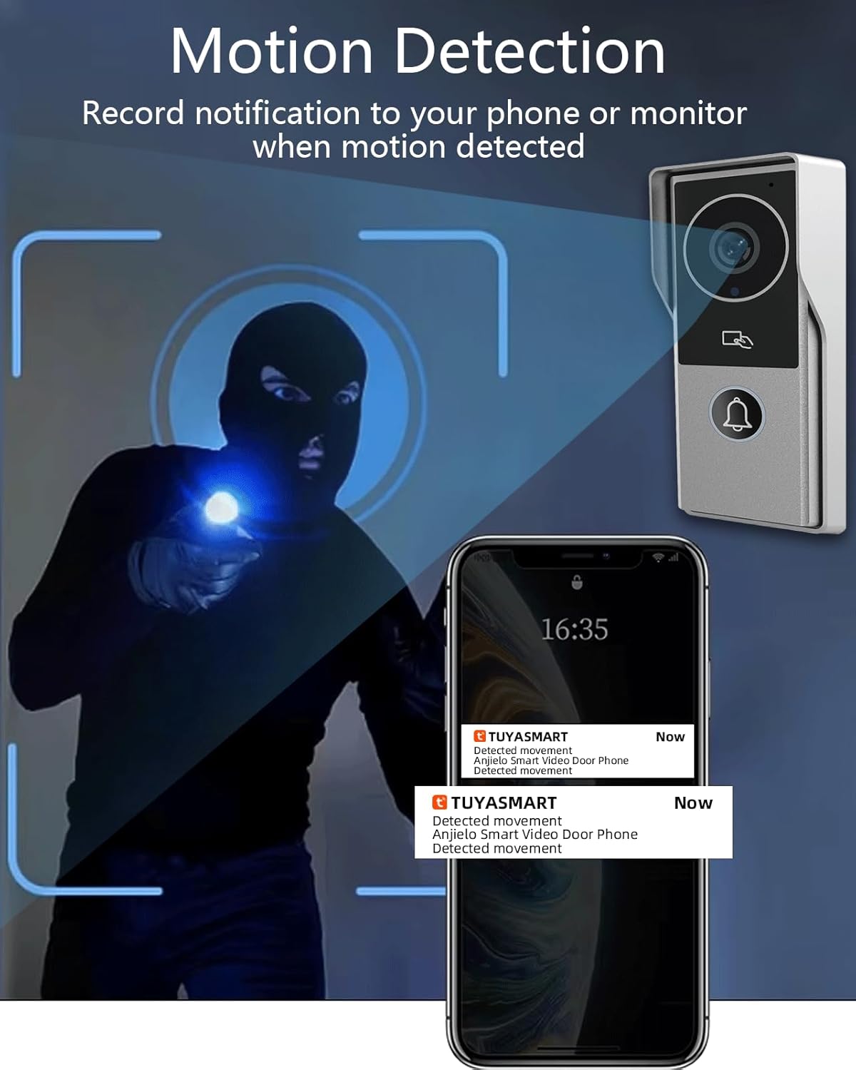 2.The monitor assist WiFi community(solely join with 2.4GHZ router band), simply setup video doorbell by connecting to wifi through the Tuya app.