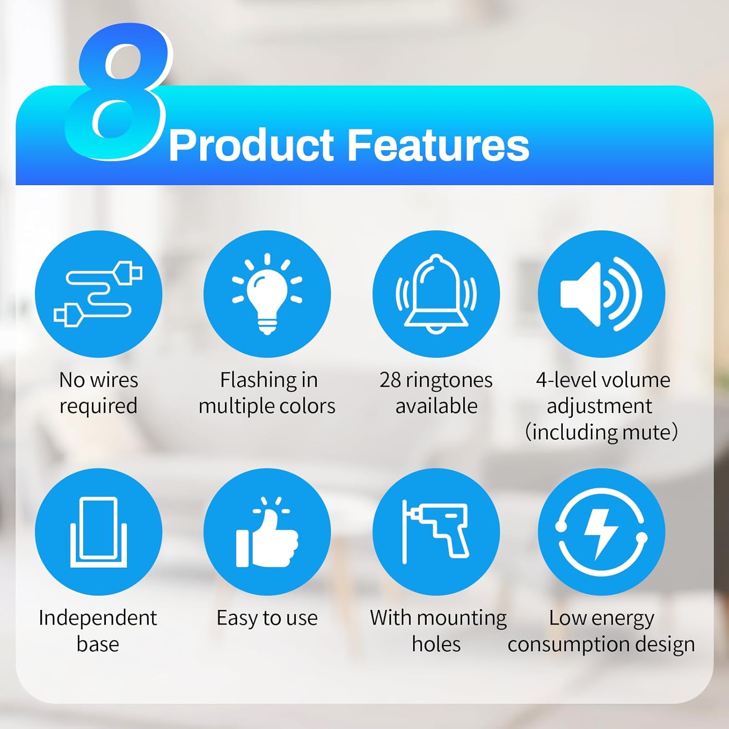 CUSTOMIZABLE SOUNDS AND VOLUME: Select from 28 ringtones and alter the quantity to your choice, starting from silent mode (0 dB) to a loud 85dB, guaranteeing it matches totally different environments and desires.