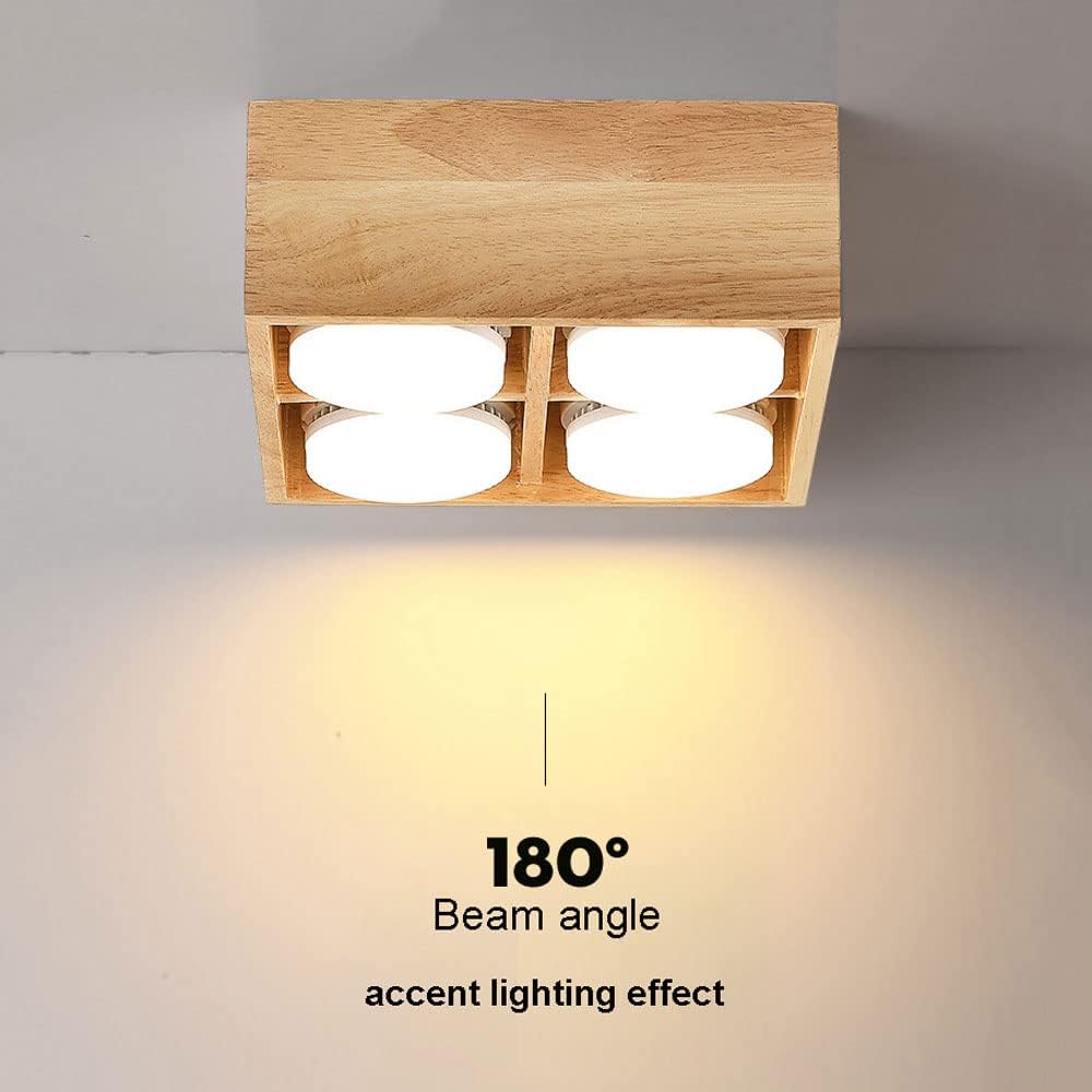 Wood Spotlight Square Ceiling Mount Light Fixtures Adjustable Surface Mounted Accent Spot Lighting Indoor, Led Directional Ceiling Spotlights for Corridor Bedroom Aisle/Wood6000K/4Light