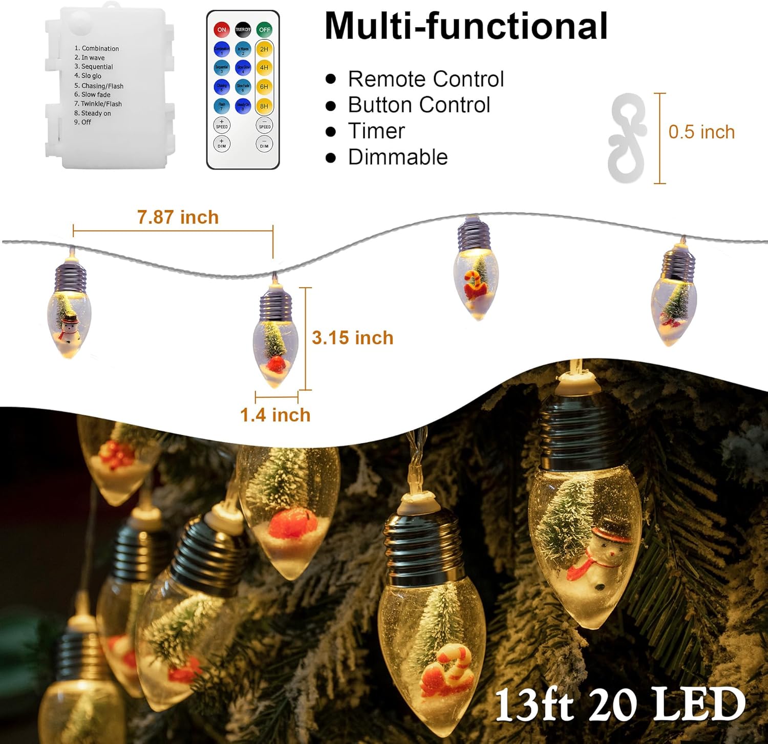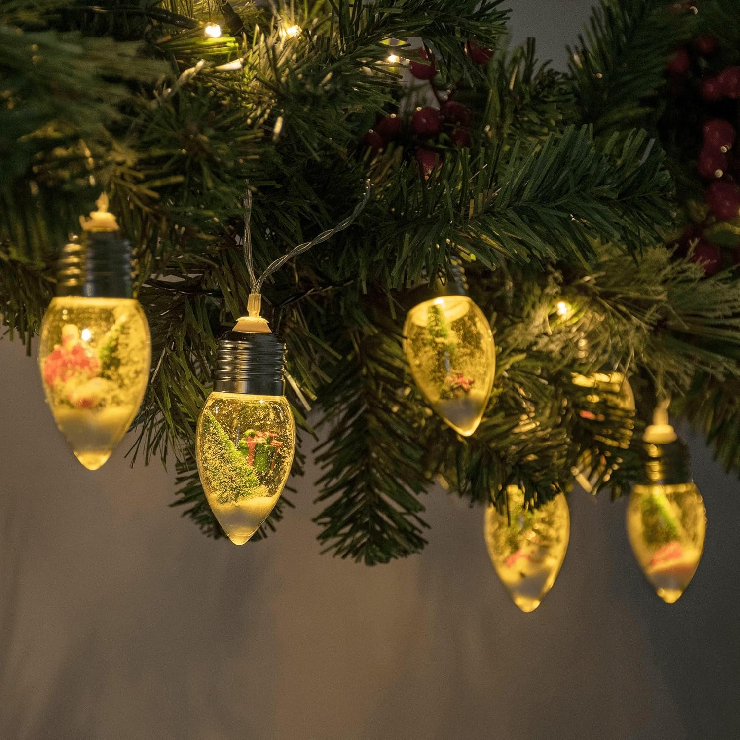 With their lovely and cute design, the snow globe string lights will not be solely excellent for Christmas decorations but in addition for bed room decorations, fire décor, or every other inventive show you possibly can think about.